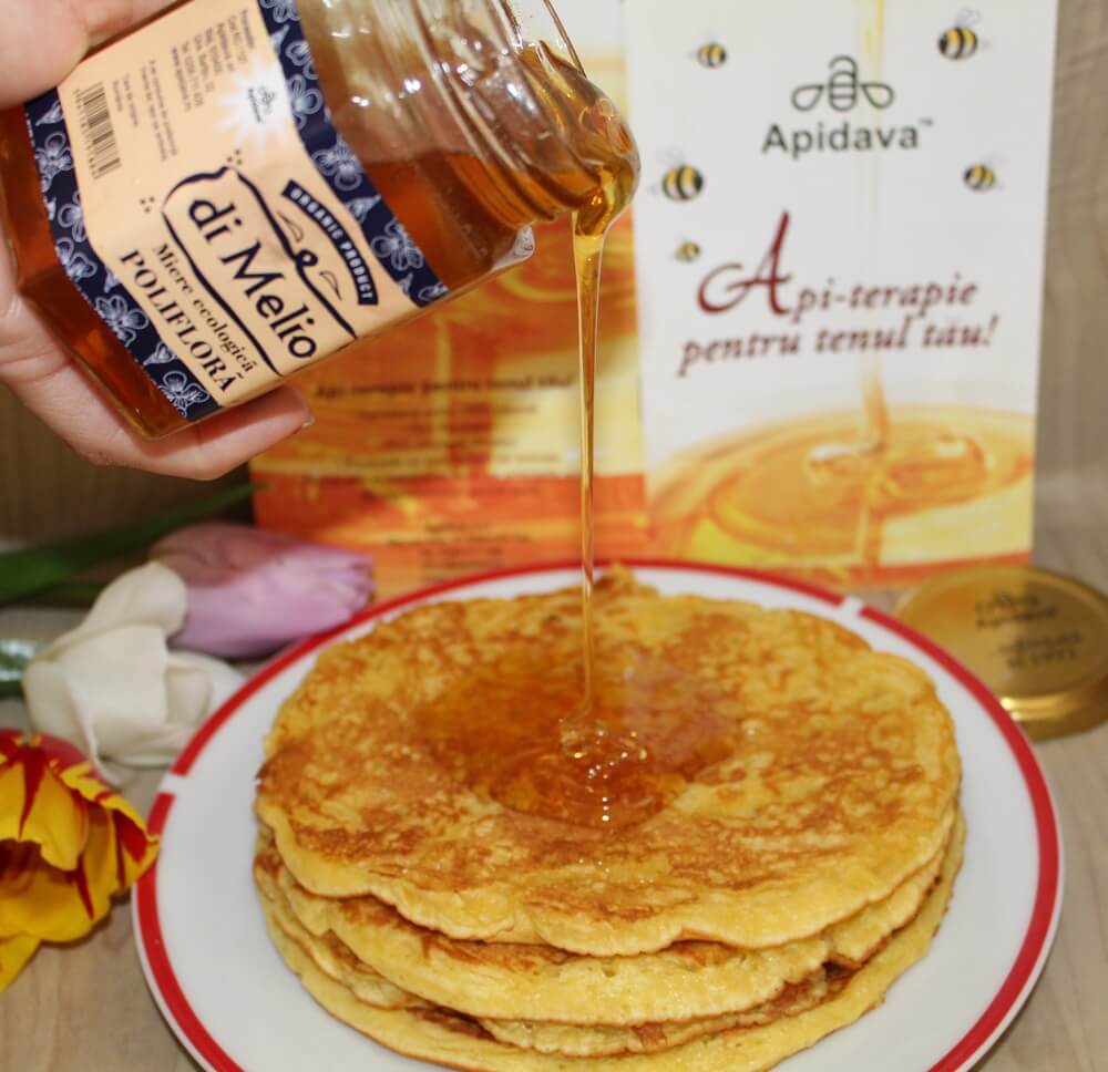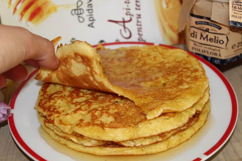 4. Aluatul este gata când toate ingredientele au fost încorporate bine. El trebuie să curgă când e luat cu lingura, dar trebuie să fie mai gros decât aluatul de clătite.